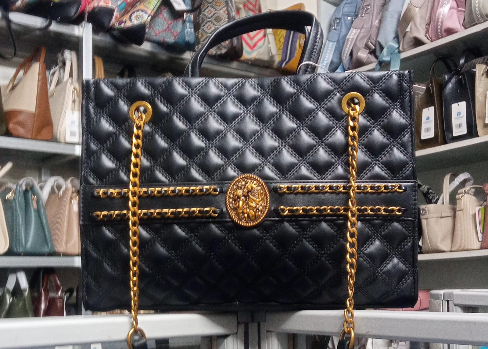 Chain Metal & Box Design PU Leather Black Bag
