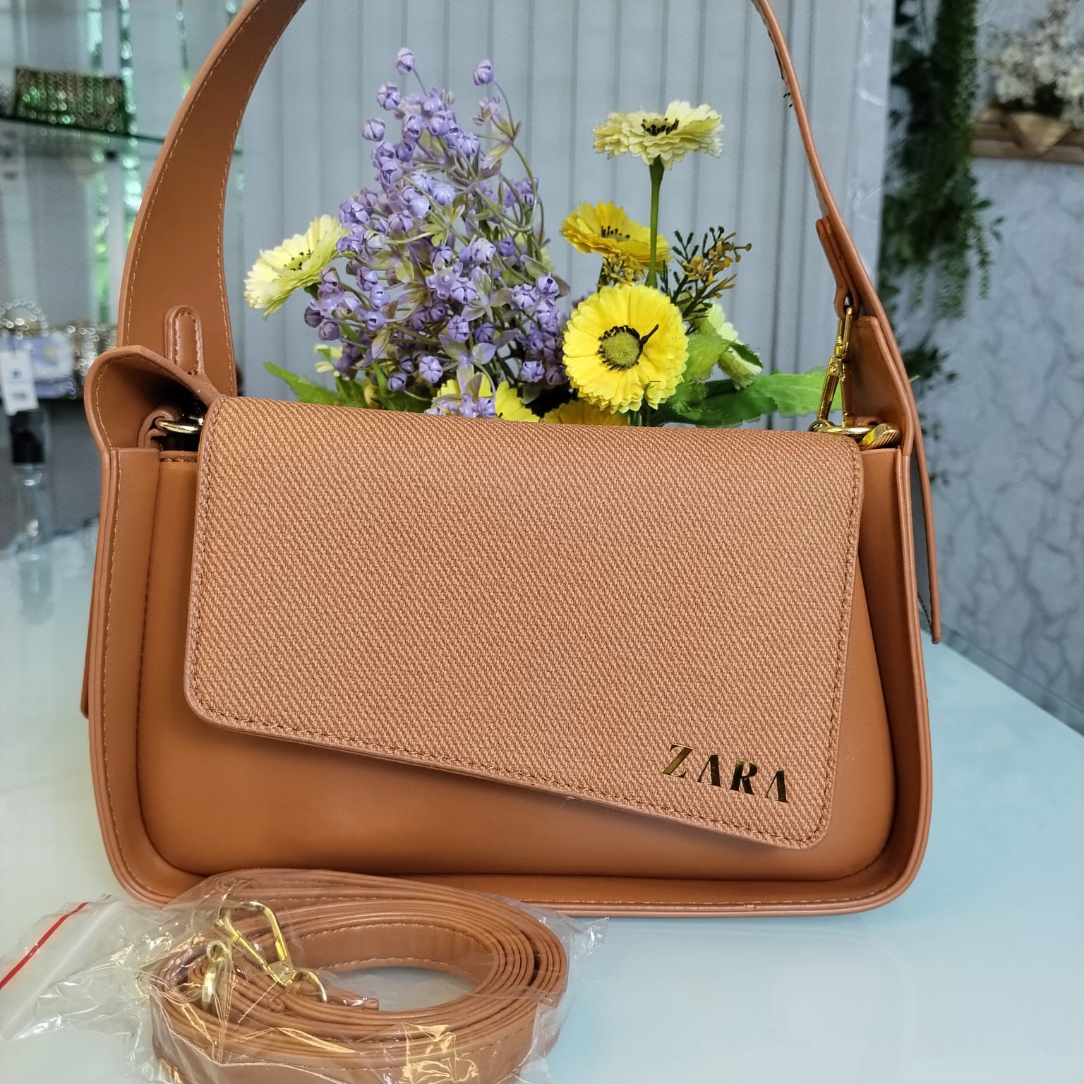 Zara Brand Lusarious Hand Bag with Long Belt – Brown
